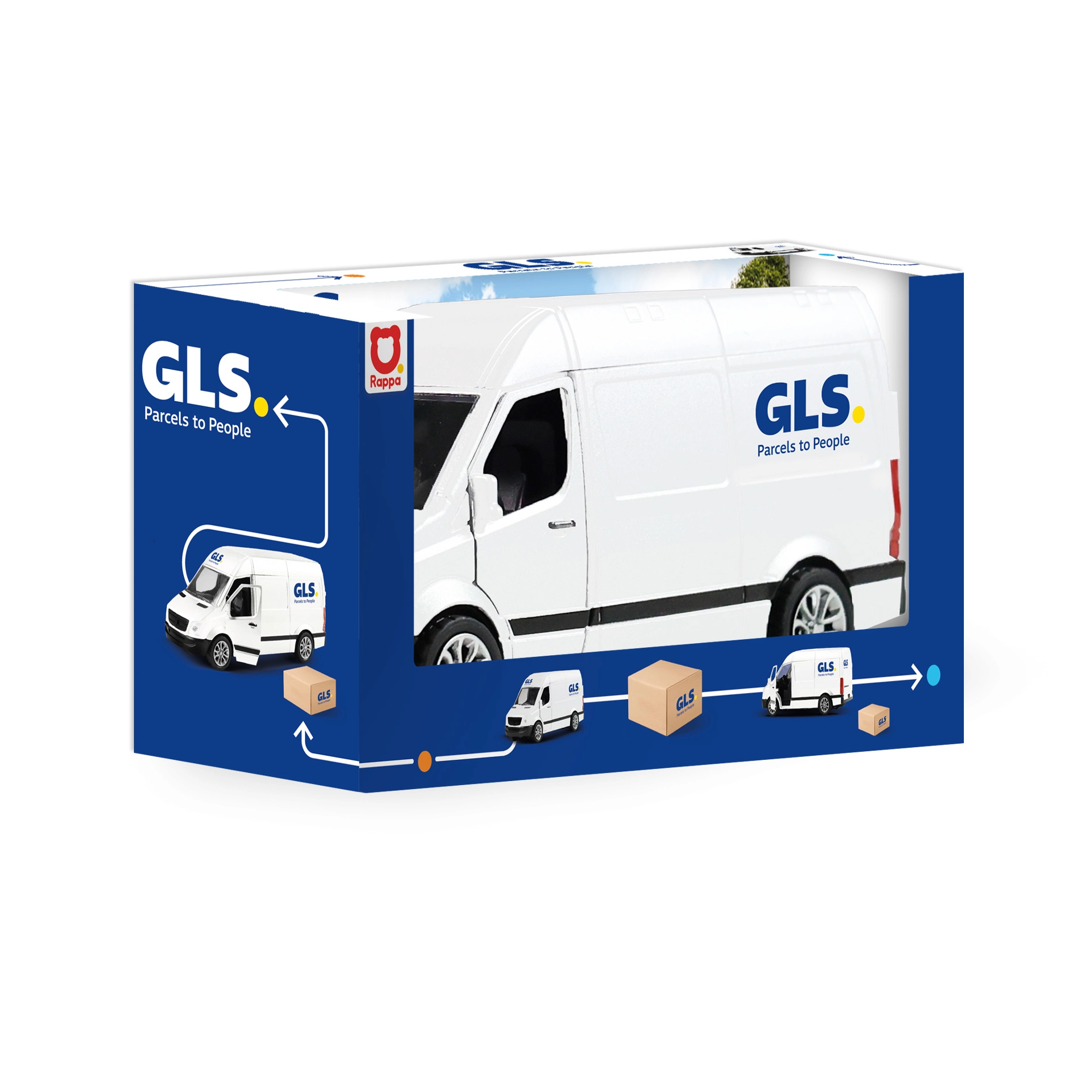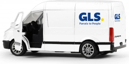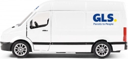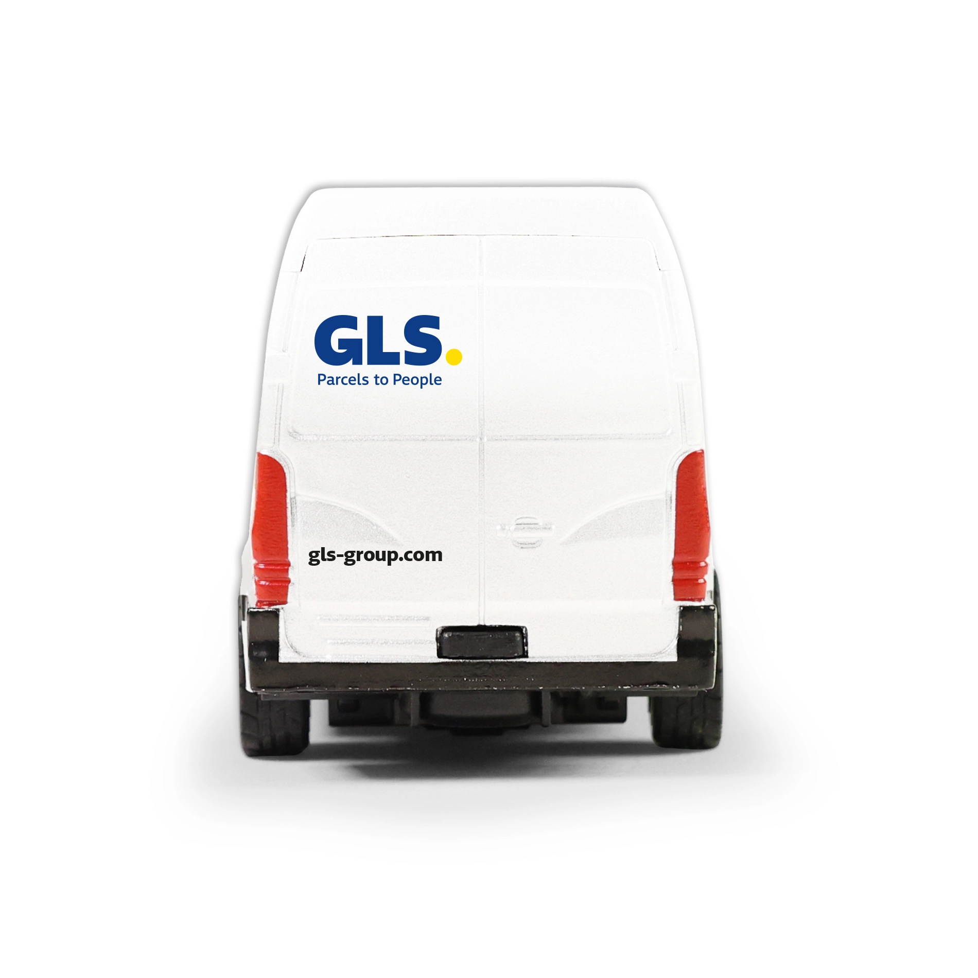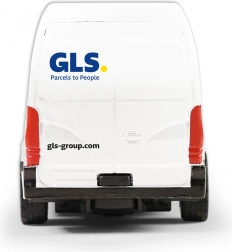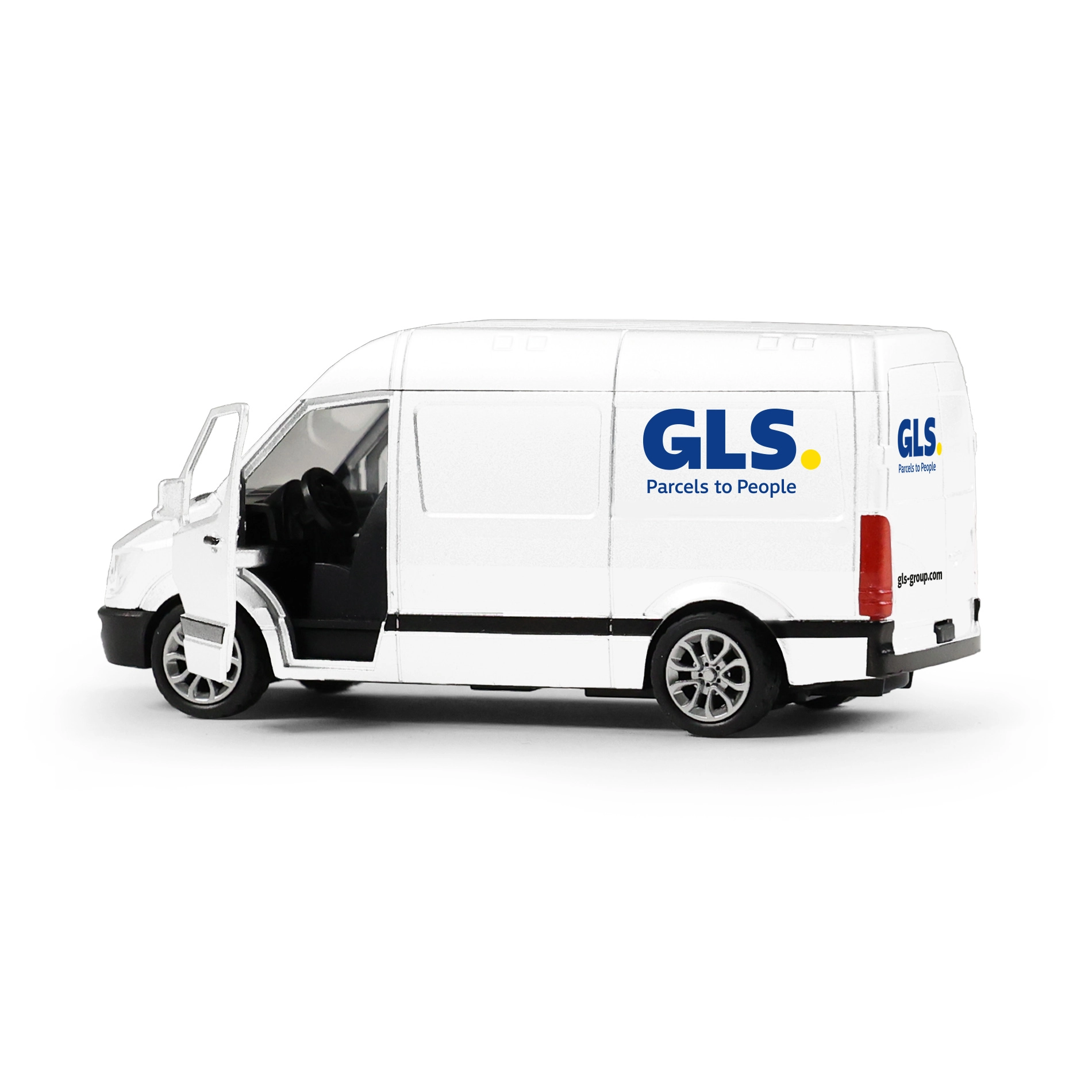 Precieze bedrukking van het GLS-logo en de slogan “Parcels to People”, de carrosserievorm, ramen en velgen zien eruit als bij de echte wagen.