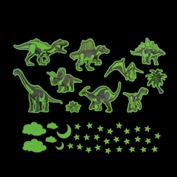 Creëer een kinderkamer vol fantasie met deze gloeiende dinosaurus-muurstickers. Plak ze eenvoudig op de muur of het meubilair en zodra het licht uitgaat gaan ze zachtjes gloeien, waardoor in slaap vallen een makkie wordt.