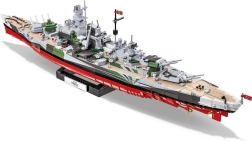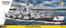 De COBI TIRPITZ uit de Historical Collection legt het beroemde Duitse slagschip uit de Tweede Wereldoorlog – het zusterschip van de BISMARCK – getrouw vast. Op schaal 1:300 krijg je realistische proporties, de karakteristieke camouflagebeschildering en vele details waaronder torens, radarstengen en sloepen. Het model heeft een indrukwekkende lengte van 87 cm en komt prachtig tot zijn recht op een plank of in een vitrine.