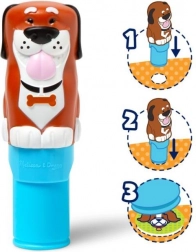 De dispenser met een hondje en kleurrijke scènes stimuleert plezier in leren, oog-handcoördinatie en fijne motoriek.
