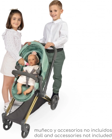 Praktische details zijn de verstelbare kap, de driepuntsgordel voor een veilige zit van de pop en de ruime onderste mand. De wagen klapt snel in voor opbergen of transport in de auto. Inclusief elegante afneembare tas in de kleuren van de collectie.