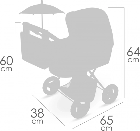 Opvouwbare poppenwagen met parasol en tas Capriccio 60 cm