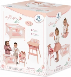 Ontdek de betoverende DeCuevas Tulipe 2-in-1 meubelset voor poppen, die functionaliteit en een zacht design combineert. Pastelzalm tinten met een bloemenpatroon en tulpmotief vallen direct op en vullen elke kinderkamer perfect aan. Dankzij hoogwaardige materialen en doordachte details is spelen comfortabel, veilig en leuk.