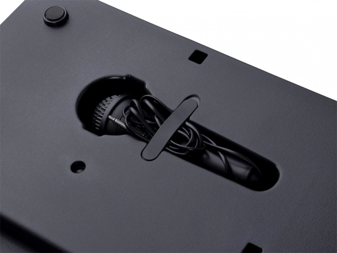 Praktische connectiviteit omvat usb en een microfooningang. In de verpakking zitten een microfoon, bladhouder en usb-kabel. Dankzij de compacte afmetingen, ingebouwde luidsprekers en de aan/uit-knop aan de zijkant is het instrument altijd klaar om te spelen.