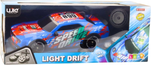 RC sportauto met verlichte carrosserie en driftwielen – blauw