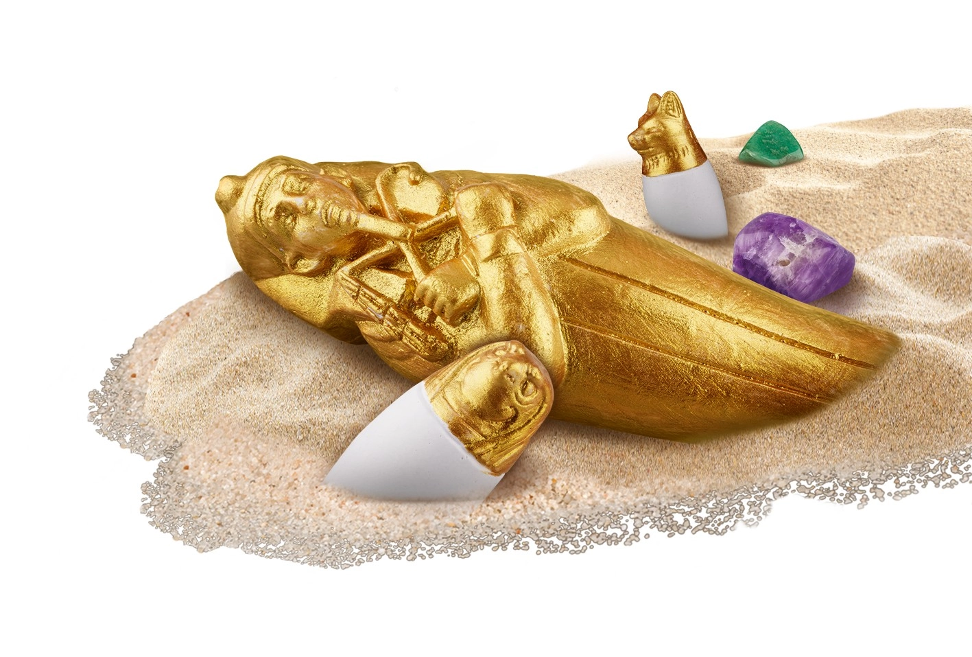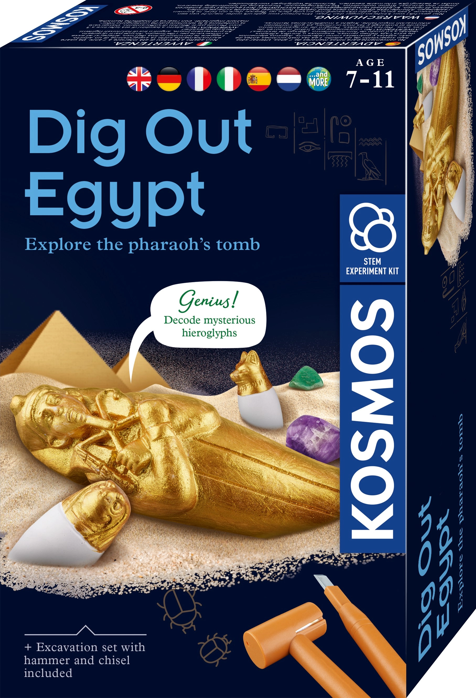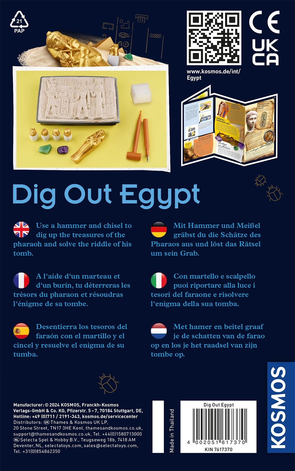 Met de archeologieset Kosmos Egyptische opgravingen worden je kinderen kleine archeologen. Met beiteltje en hamertje leggen ze stap voor stap schatten bloot die in gips verborgen zitten, terwijl ze veel leuke weetjes over het oude Egypte leren. De praktische, geïllustreerde handleiding is beschikbaar in het Engels met Tsjechische vertaling; bovendien kun je de Tsjechische handleiding eenvoudig downloaden via een QR-code.