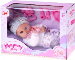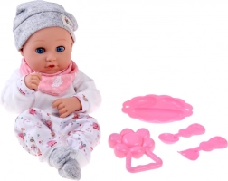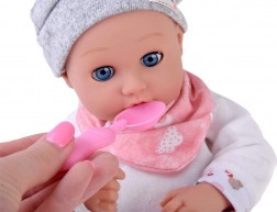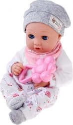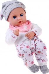 Deze pop is gemaakt van prettig, zacht materiaal met een kunststof hoofd en handen voor extra duurzaamheid. De outfit in zachte kleuren bestaat uit een grijs mutsje, zachte blouse, broek met patroon en grijze sokken. Dankzij de bewegende oogleden bootst de pop slapen en wakker zijn levensecht na en bevordert hij natuurlijke zorg en empathie.