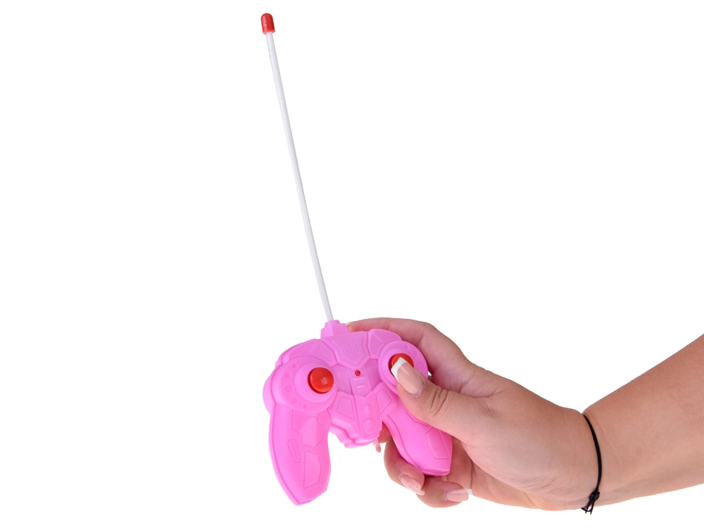 De controller met twee knoppen zorgt voor intuïtief vooruit/achteruit rijden en sturen. De veilige lange antenne en ergonomische vorm maken vasthouden en bedienen gemakkelijk.