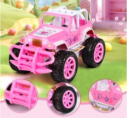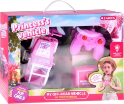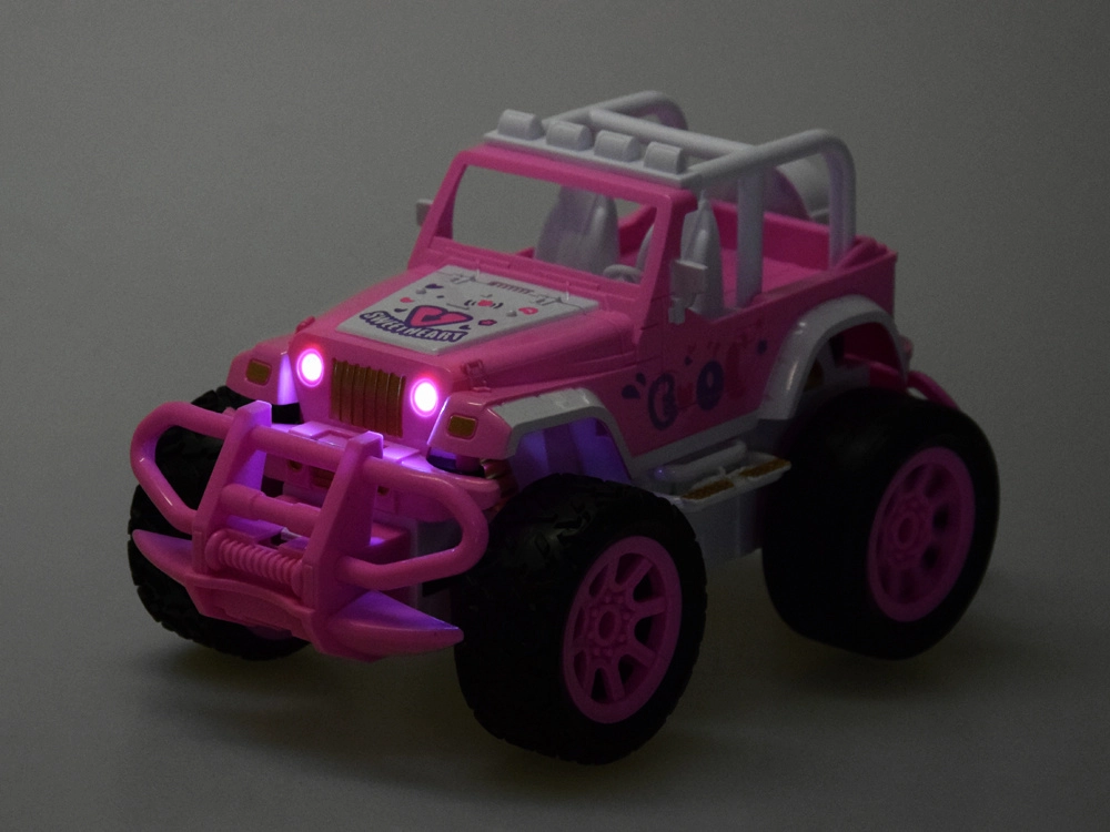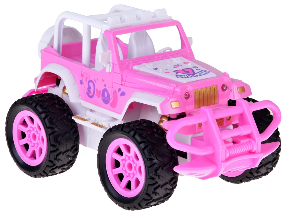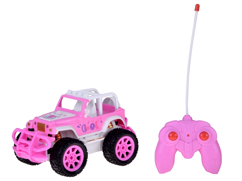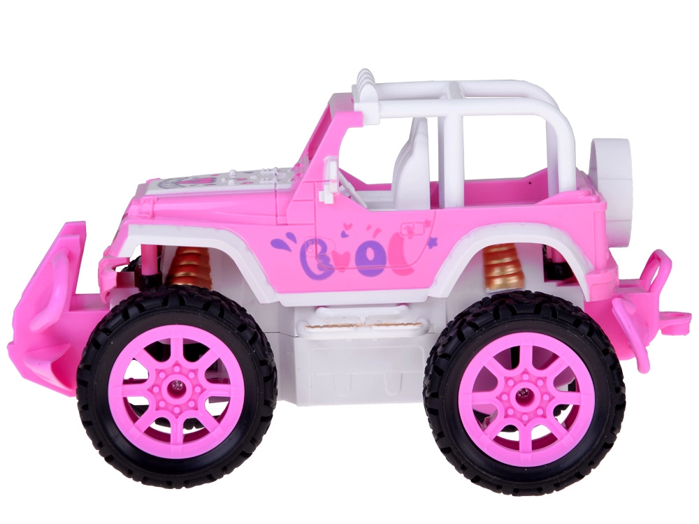 Roze terrein RC-auto maakt alle kleine prinsesjes vanaf 3 jaar blij. Eenvoudige bediening met een gamepad-vormige controller, brandende koplampen en grote banden zorgen voor veel plezier en helpen bij de ontwikkeling van coördinatie en concentratie.