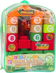 De blokken zijn licht, klikken eenvoudig vast en zijn veilig voor dagelijks gebruik. De dinosaurusfiguur prikkelt de fantasie en nodigt uit tot het verzinnen van eigen verhalen. De hele set wordt opgeborgen in een transparante rugzak met rits, wat het opbergen en meenemen naar de opvang of op reis vergemakkelijkt.