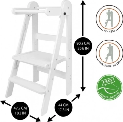 De inklapbare leertoren LOFTY helpt kinderen mee te doen aan dagelijkse activiteiten – van koken tot tandenpoetsen. Hij is gemaakt van hoogwaardig multiplex met bewezen veiligheid zonder formaldehyde en voldoet daarmee aan de eisen van het moderne huishouden. Door het doordachte ontwerp is hij makkelijk te verplaatsen en op te bergen.