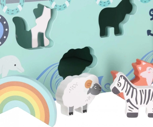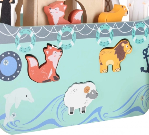 Dieren worden in precies gevormde openingen aan de zijkant van de boot geplaatst. Zo trainen kinderen op een natuurlijke en leuke manier vormherkenning, geduld en fijne motoriek.