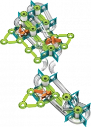 Groene banen, liggers en oranje triggers koppel je eenvoudig tot stabiele trajecten. Interactieve elementen leiden de knikkers door bochten en vallen.