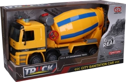 Een realistische betonmolenwagen van 40 cm die kleine bouwers zal verblijden. Voorzien van een zwaaivliegwiel voor soepele ritten, licht- en geluidseffecten bediend via knoppen op de cabine en een draaende mengtrommel met behulp van een zijwiel.