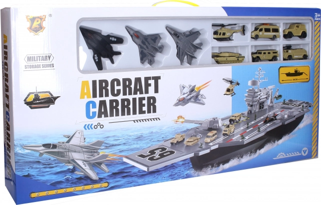 Vliegdekschip met voertuigen en vliegtuigen 86 × 19 × 21 cm