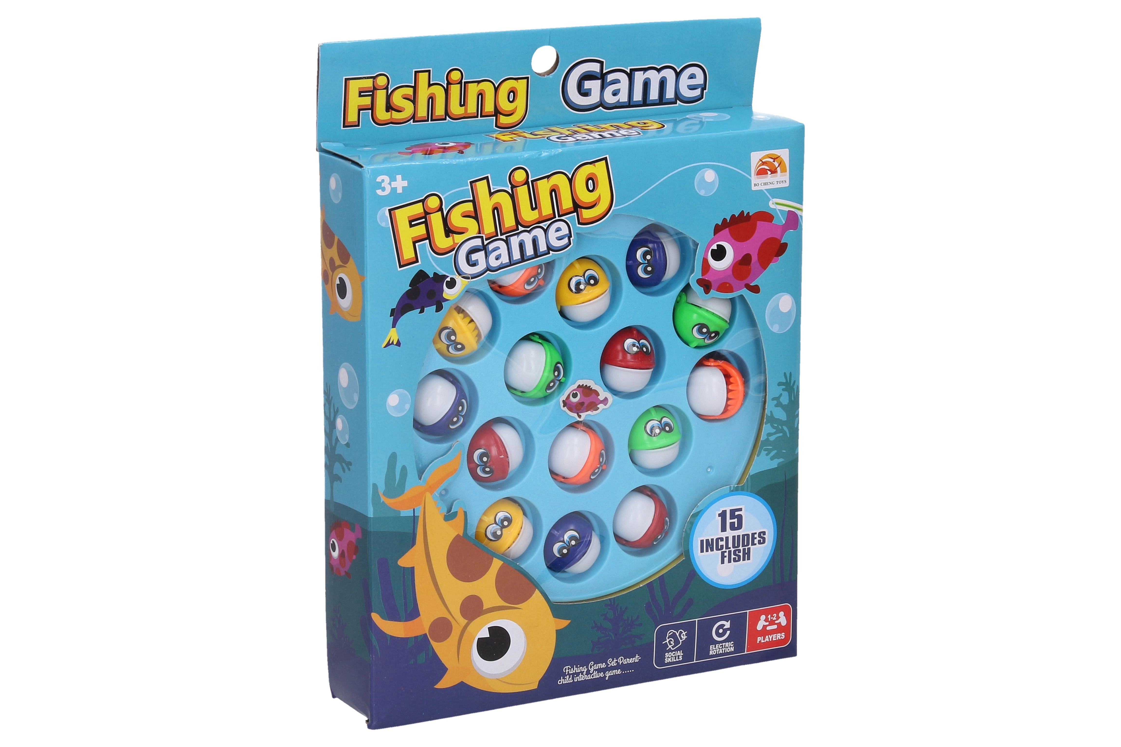 Een leuk tafelspel vissen vangen voor één of 2 spelers met snelle actie en reactietraining. Bevat 15 visjes en 2 hengeltjes, afmetingen van het spel zijn 16 × 17,5 × 3 cm. Werkt op 2× AA 1,5 V (niet inbegrepen). Verkrijgbaar in meerdere varianten.