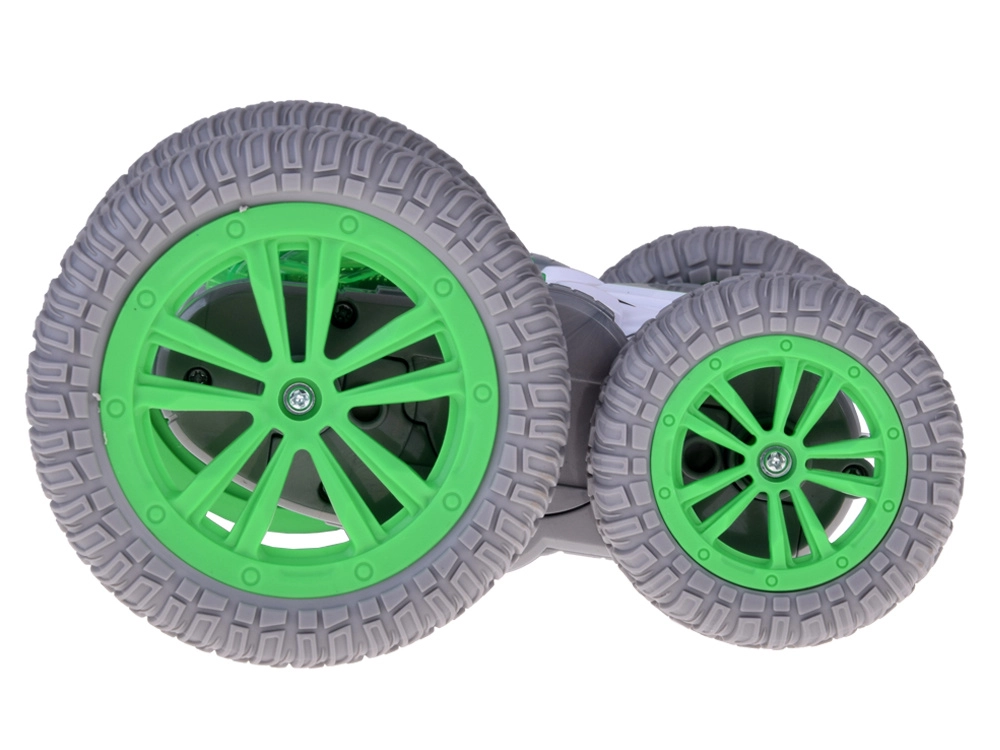 De auto kan rijden op “buik en rug”, salto’s maken en volledige 360° rotaties uitvoeren. Ideaal voor stunts op vloeren en tapijten.