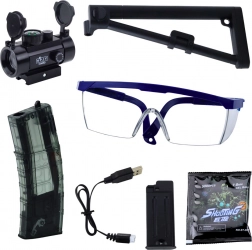 Model MK7 is perfect voor iedereen die van actie houdt. Dankzij de 7,4 V Li-accu is hij klaar voor lange speelsessies zonder onnodige onderbrekingen. Verwisselbare magazijnen zorgen voor snelle munitiewissels, terwijl het optische vizier helpt bij nauwkeurigere treffers. De inklapbare kolf geeft het wapen een tactisch karakter en comfortabel maatwerk voor de speler.