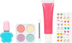 De cosmetica is ontwikkeld voor de gevoelige kinderhuid – dermatologisch getest, veilig en niet irriterend. De nagellak vormt een peel-off laag voor eenvoudig verwijderen; de oogschaduw spoel je gemakkelijk af met warm water en zeep. De hele set is 100% vegan en cruelty-free.