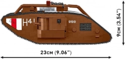 Dit zorgvuldig vervaardigde model van de legendarische Britse tank MARK V (Male) is gebaseerd op het authentieke museumexemplaar nr. 9199 uit The Tank Museum in Bovington. Dankzij de schaal 1:35 past hij perfect bij figuren en andere COBI-modellen. Duurzame prints zonder stickers, functionele rupsbandaandrijving en gedetailleerde afwerking maken er een aantrekkelijk verzamelobject van.