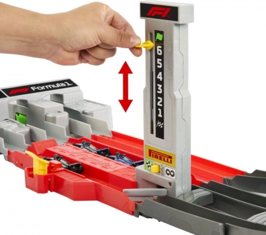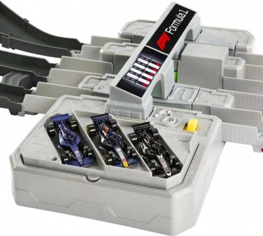 Stap in de wereld van hogesnelheidsduels met de Hot Wheels-baan, geïnspireerd op stedelijke Formule 1-circuits. Kinderen lanceren tot drie metalen F1-modellen via de krachtige drievoudige launcher, razen door kombochten en hoogteverschillen en de winnaar wordt bepaald bij de finishpoort met rondenteller.