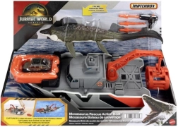 Matchbox Jurassic World reddingsboot met mosasaurus en jeep