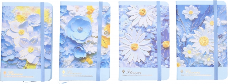 Het “bloemenmix”-design biedt 4 aantrekkelijke varianten, zodat er voor iedereen iets bij zit. Het notitieboek opent gemakkelijk en het prettige papier maakt schrijven met pen of potlood aangenaam.