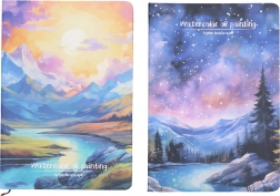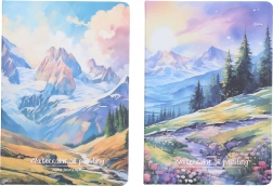 Elegant gelijnd notitieboek, ideaal voor school, werk en onderweg. Dankzij het compacte formaat van 21 × 14,5 cm past het gemakkelijk in je tas of rugzak en biedt het voldoende ruimte voor dagelijkse notities. De landschapsmotieven geven je aantekeningen een prettige uitstraling.