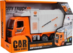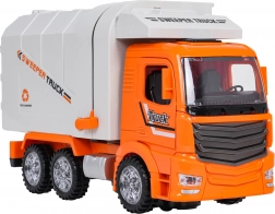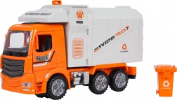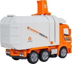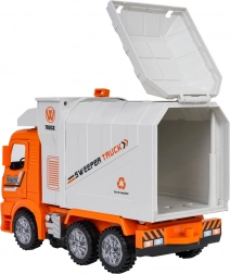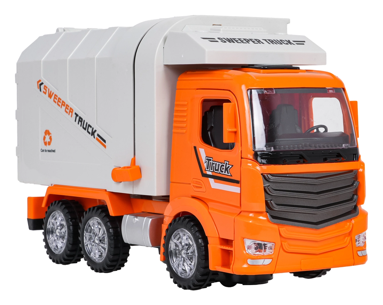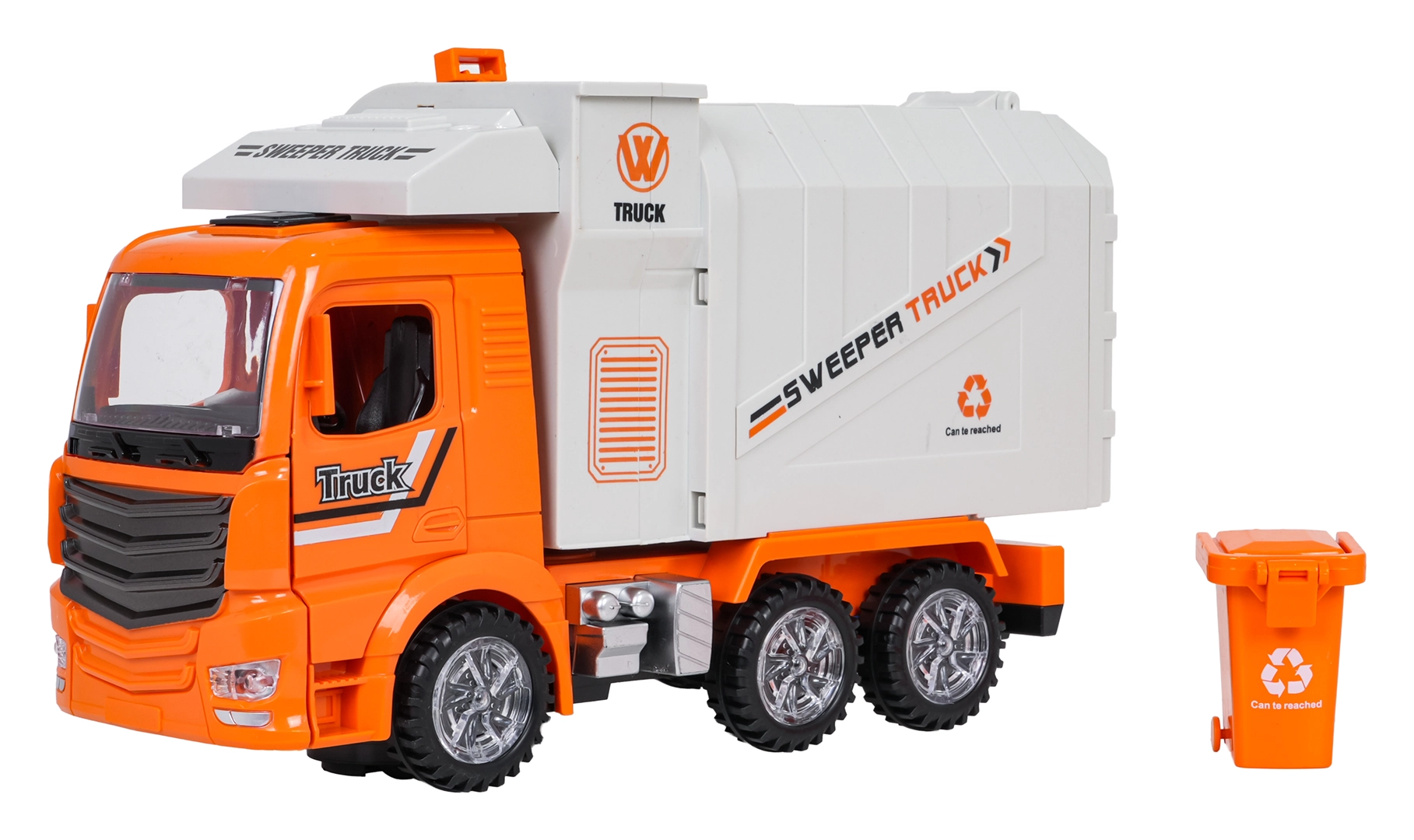 Deze oranje vuilniswagen is gemaakt van hoogwaardige kunststof met oog voor detail. Dankzij de licht- en geluidseffecten beleven kinderen een authentieke ervaring van stadsverkeer. De bediening omvat rijden in alle richtingen, openende deuren en het automatisch heffen en laten zakken van de container, wat creatief en realistisch spel stimuleert.