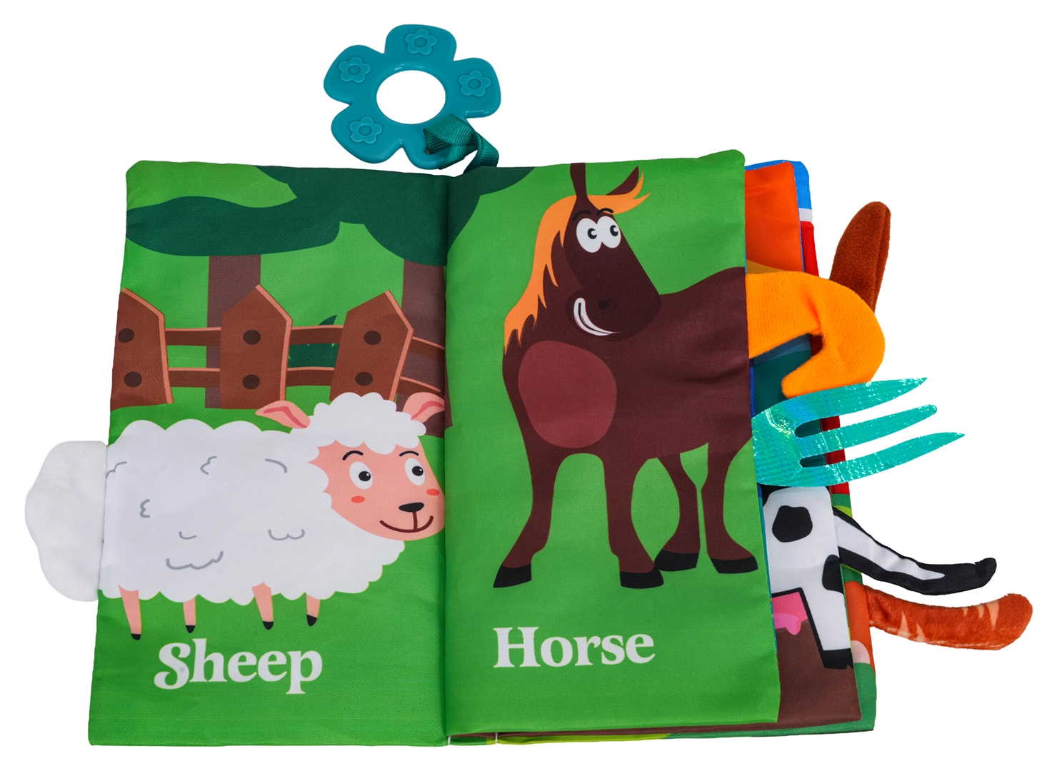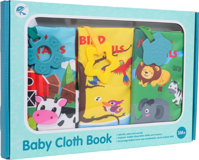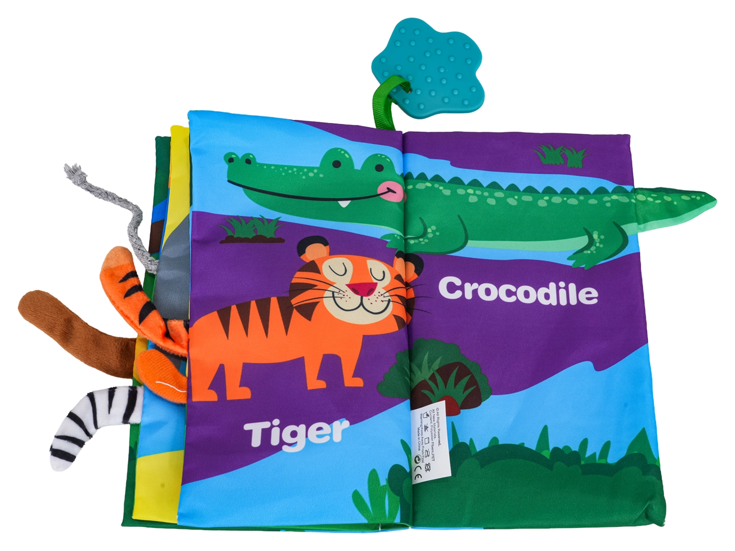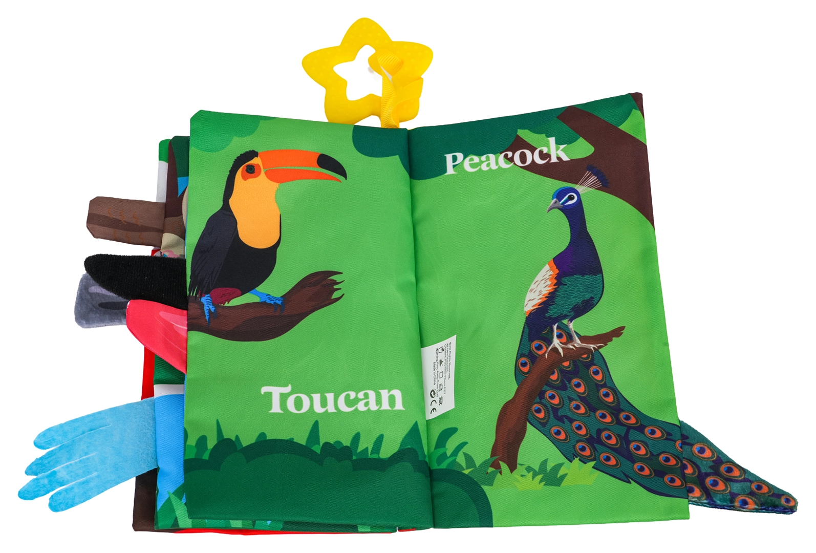 Ontdek een schattige set van drie stoffen boekjes voor kinderen vanaf 3 maanden, die zintuigen en fijne motoriek stimuleren. Elk boekje biedt krakende pagina’s, zachte texturen, uitstekende dierenstaartjes en een praktische bijtring/clip om vast te maken. De thema’s boerderij, vogels en jungle trekken de aandacht met kleurrijke illustraties en eenvoudige dierennamen in het Engels. De stoffen boekjes zijn licht, waterafstotend en gemakkelijk schoon te maken – ideaal voor thuis en onderweg.