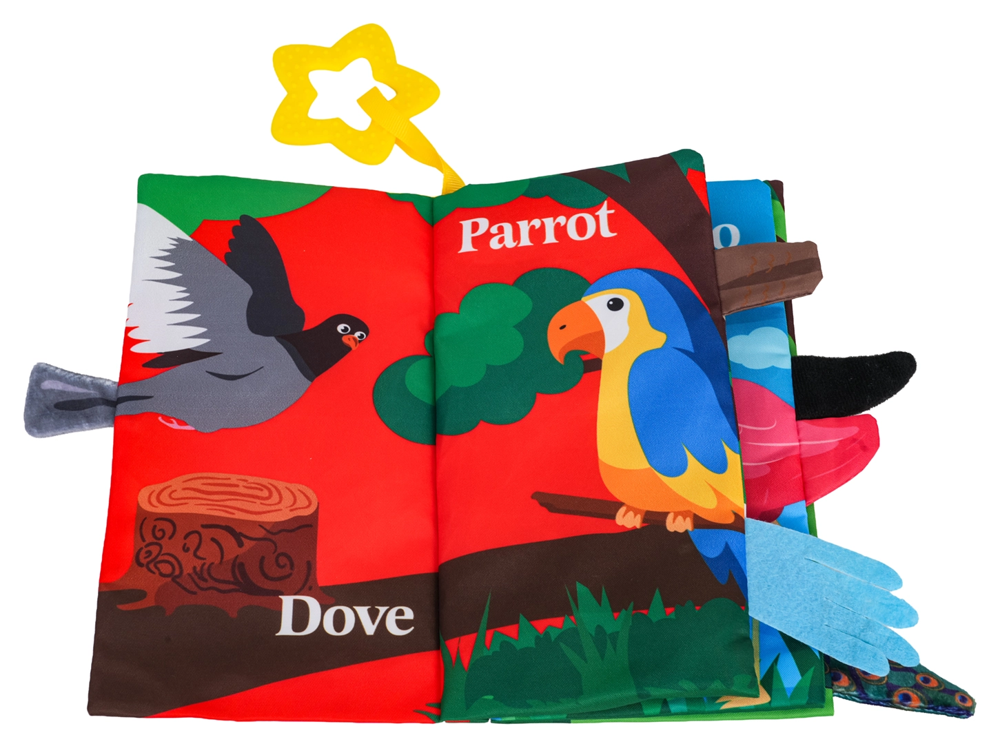 Uitstekende staartjes, vleugels en diverse texturen in combinatie met krakeleffecten stimuleren de zintuigen en bevorderen de fijne motoriek.