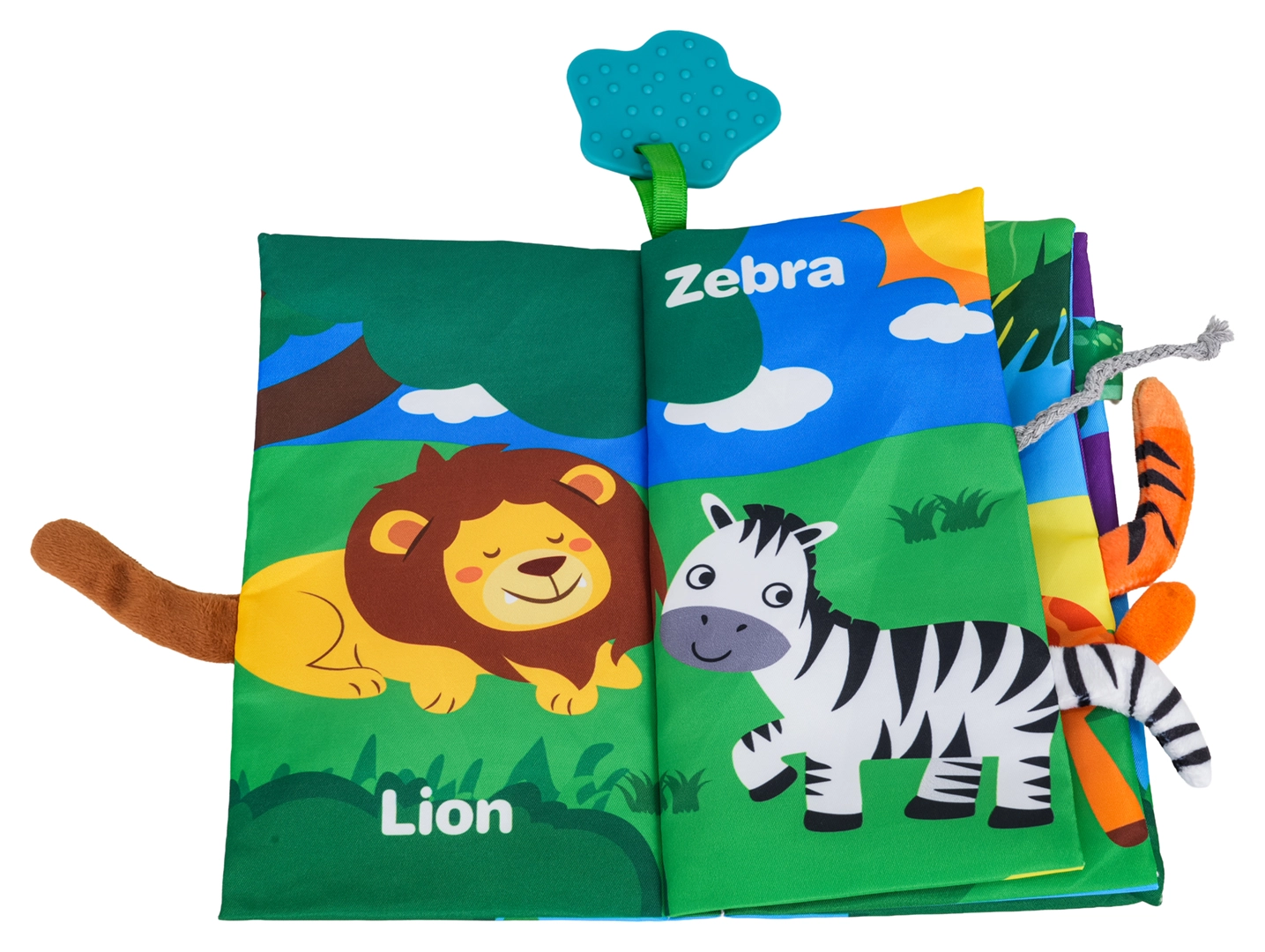Elk boekje heeft een geïntegreerde bijtring/clip voor eenvoudige bevestiging aan kinderwagen of autostoel. De pagina’s zijn zacht, duurzaam en waterafstotend en kunnen eenvoudig worden afgenomen. Dankzij de lichte constructie liggen ze prettig in zelfs de kleinste handjes en nodigen ze uit om texturen en geluiden te ontdekken.
