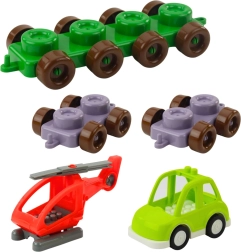 Elk onderdeel is gemarkeerd met een letter of cijfer, wat logisch denken, geheugen en fijne motoriek stimuleert. Kinderen kunnen eenvoudige constructies bouwen, eerste woordjes vormen en tellen. Figuren, voertuigen en constructie-elementen vergroten de speelmogelijkheden.