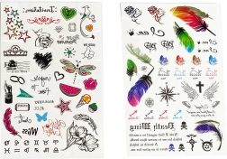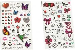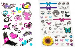 Ontdek de kleurrijke wereld van tijdelijke tatoeages voor meisjes. Op elk vel vind je tientallen schattige motieven in verschillende formaten – van vlinders en bloemen tot hartjes, strikjes en sterretjes. Dankzij de eenvoudige werkwijze kunnen kinderen ze onder toezicht van een volwassene zelf aanbrengen. Perfect voor feestjes, carnavals, goodiebags en als creatieve weekendversiering.