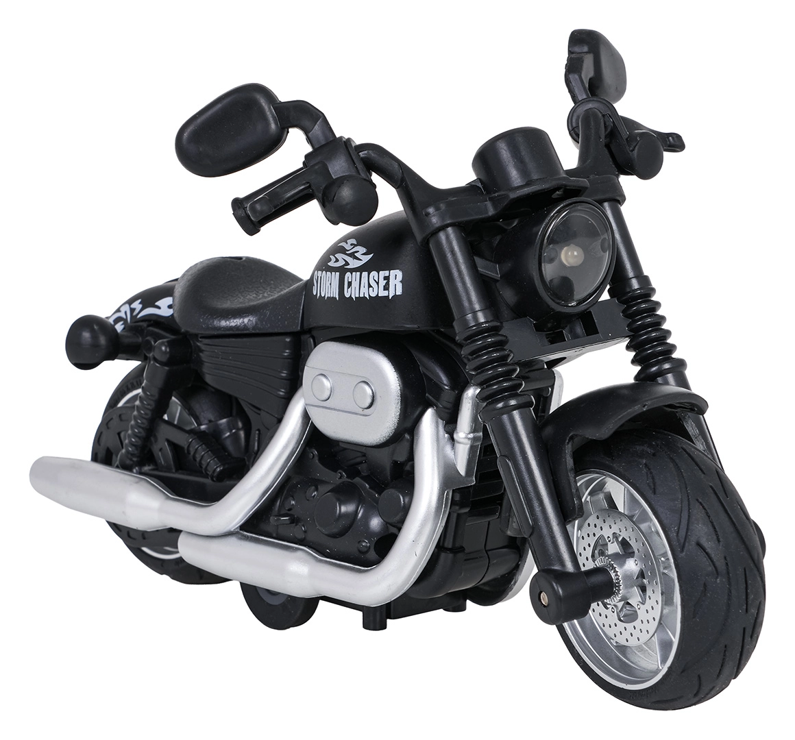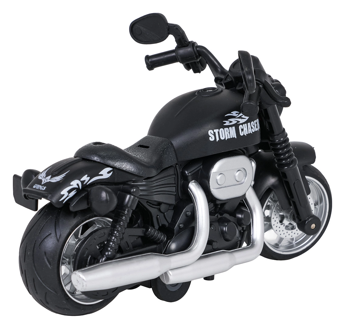 Geniet van een actievolle rit met het gedetailleerde model STORM CHASER. De robuuste metalen uitvoering, de realistische details van motor en uitlaten en de rubberen banden zorgen voor een stoere look en duurzaamheid tijdens het spelen. Dankzij de pull-back aandrijving is het genoeg om naar achteren te trekken en los te laten – de motor schiet vooruit.