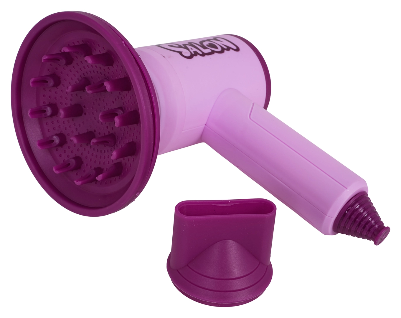 De kinderlijke föhn biedt het geluid van föhnen en een zachte luchtstroom voor realistisch spel. In de verpakking vind je zowel een diffuser als een concentrator voor verschillende “styling”-effecten.
