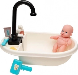 De verpakking bevat een badje met douche, een pop en praktische accessoires: mini-föhn, flesje shampoo, zeep, kam, tandenborstel en een tube tandpasta. De pastelkleuren en zorgvuldige afwerking zorgen voor een aantrekkelijke look en een lange levensduur.