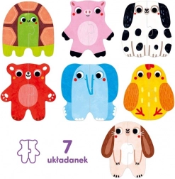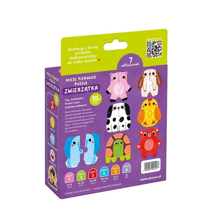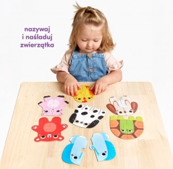 Mijn eerste puzzel – dieren is de ideale eerste puzzelset voor beginnende spelers. Kinderen zoeken en verbinden twee helften van afbeeldingen en ontdekken zo op speelse wijze de dierenwereld. Elke juiste match is een klein succes dat motiveert om verder te spelen.