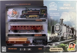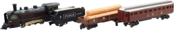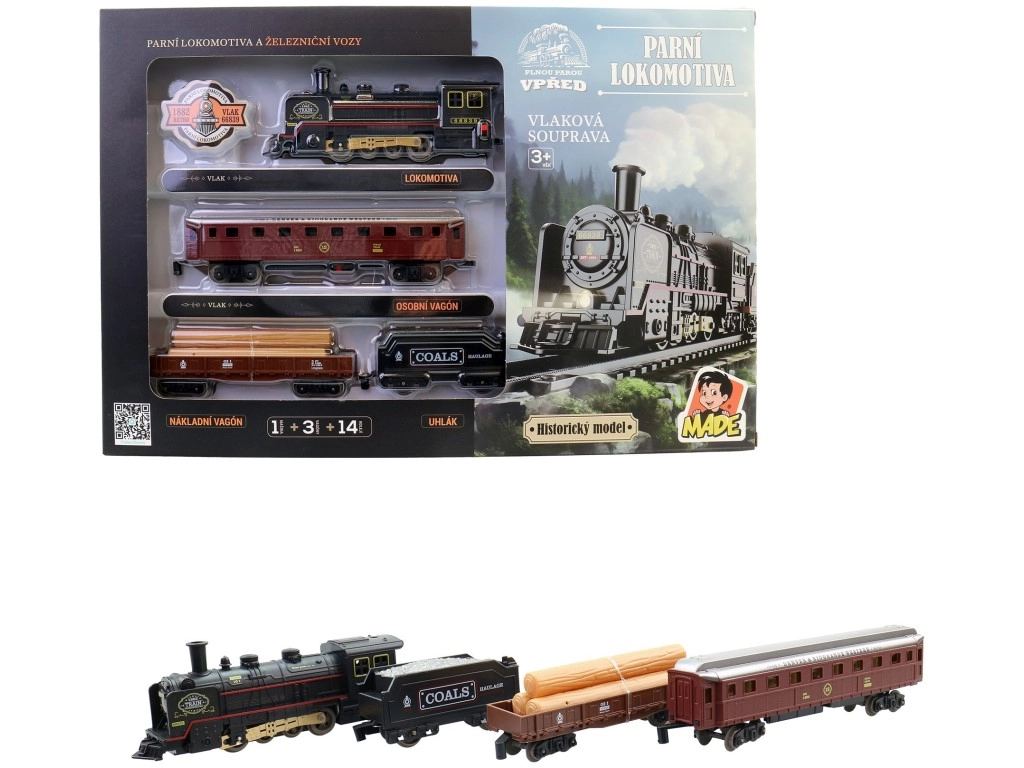 Inclusief kolentender, personen- en goederenwagon. Kinderen kunnen passagiers en vracht vervoeren en hun eigen verhalen bedenken.