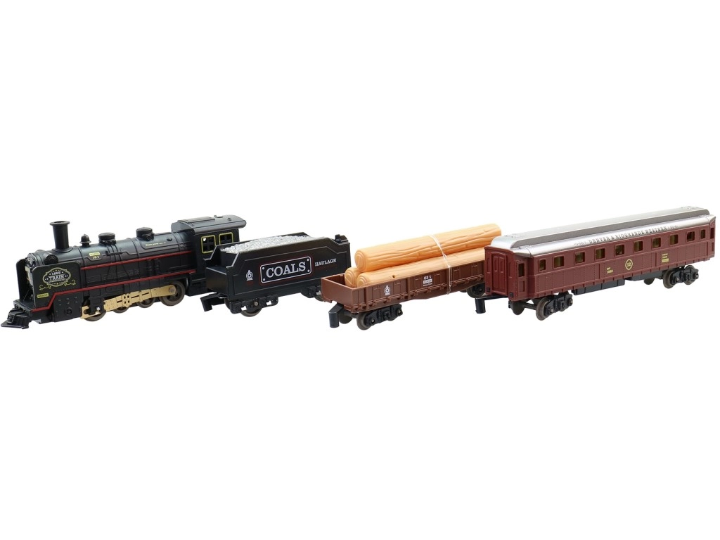 Deze stijlvolle treinset voor kinderen biedt realistische details van de locomotief en wagons en veel mogelijkheden voor vrij spel. Dankzij het grotere speeloppervlak van 103 × 67 cm bouwen kinderen eenvoudig hun eigen spoorbaan en gaan ze op avontuurlijke ritten met vracht en passagiers.