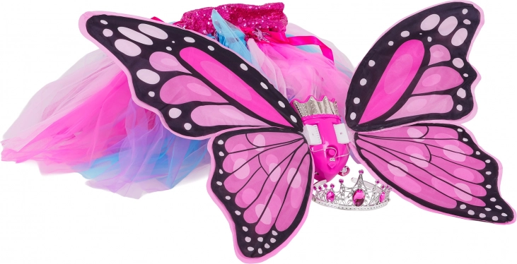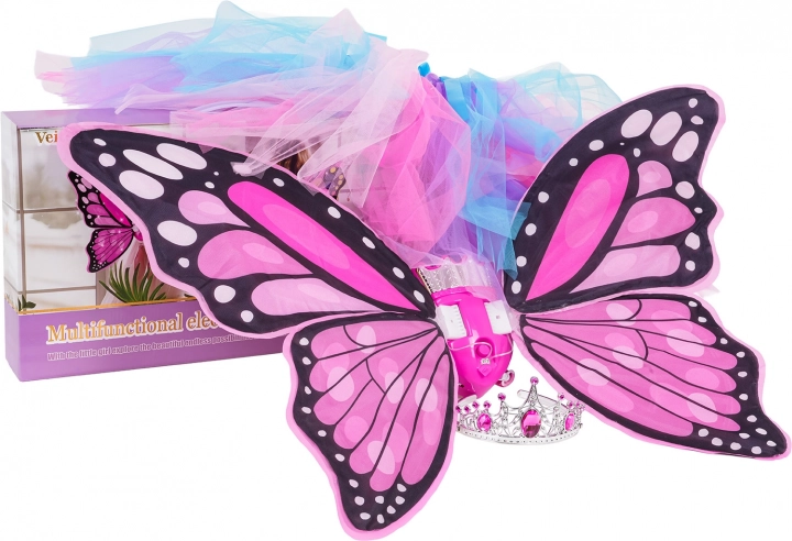 Grote roze vleugels met meerdere licht- en fladderstanden geven elk spel een magische sfeer. De bediening is eenvoudig, het effect is betoverend en veilig voor kinderen.