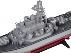 Detailrijk dek, opbouwen, radars en kanonnen geven het model een indrukwekkende uitstraling. Inclusief stabiele standaard waarop het schip na elke vaart prachtig uitkomt.