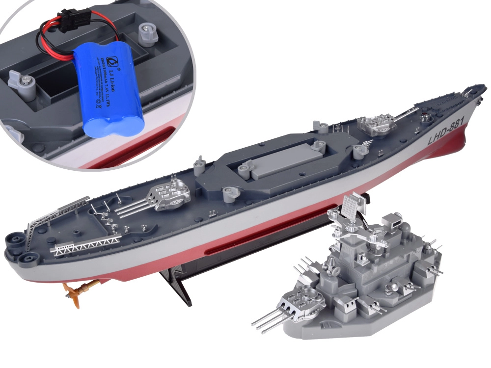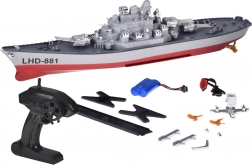 Ontdek een realistisch radiografisch model – het slagschip LHD-881 op schaal 1:390 met een lengte van 60 cm. Biedt een snelheid tot 10 km/u, een besturingsbereik van ca. 100 m, soepele manoeuvres voor/achterwaarts en links/rechts, en stabiele 2,4 GHz-besturing. In de set: 7,4 V-accu, USB-opladen, zender en displaystandaard – ideaal om mee te varen en als opvallend showstuk.