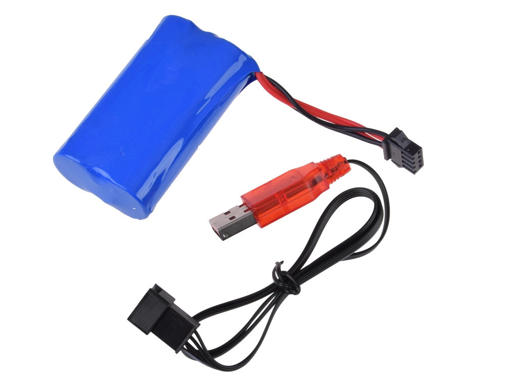 - Klaar om te varen – schip, zender, 7,4 V-accu, USB-kabel en standaard in de set.