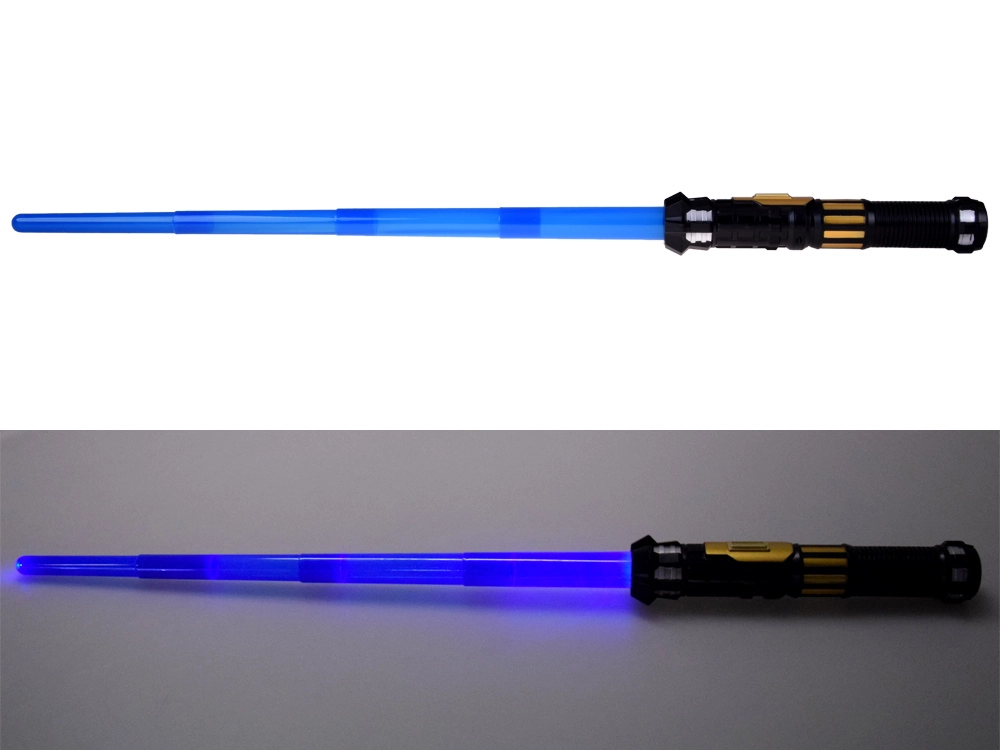 Met één druk op de knop laat je de kling oplichten en activeer je realistische geluiden. Bij een volgende druk dimt het licht zachtjes.