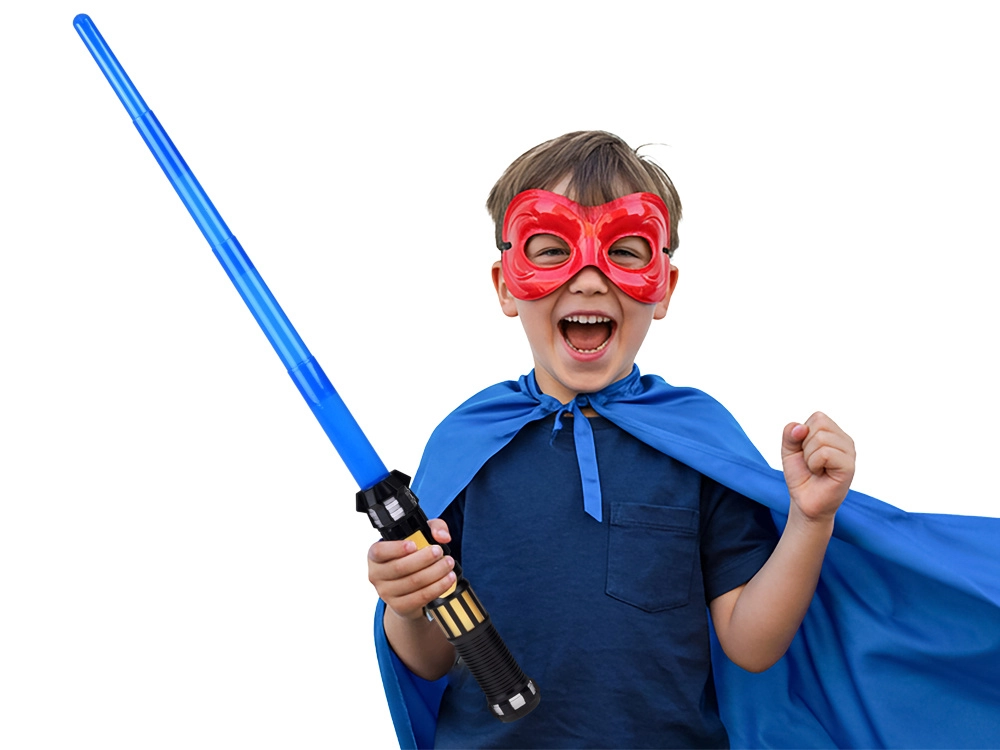 Word de held van je eigen melkweg met dit uitschuifbare lichtzwaard! De telescopische blauwe kling, licht- en geluidseffecten en comfortabele handgreep maken het de ideale accessoire voor kinderduels en kostuums. Het zwaard klapt snel uit met een zwaai en gaat met één knop branden, zodat het speelplezier binnen een seconde kan beginnen.