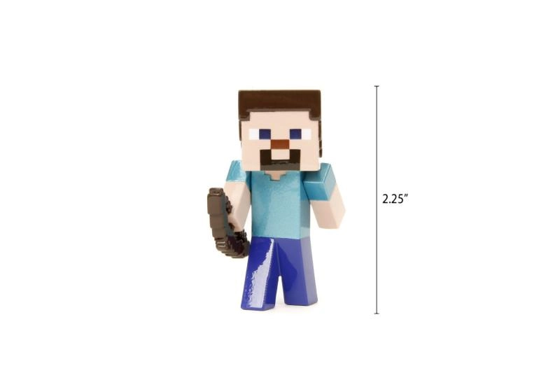 Breid je collectie uit met de officiële figuren uit Minecraft in een compacte hoogte van 6,5 cm. Elk model uit de die-cast serie is gemaakt van metaal voor extra duurzaamheid en een prettige zwaarte in de hand. Kies uit de populaire personages Steve, Alex, Creeper en Warden – ideaal voor verzamelaars of als stijlvolle decoratie op bureau of plank.