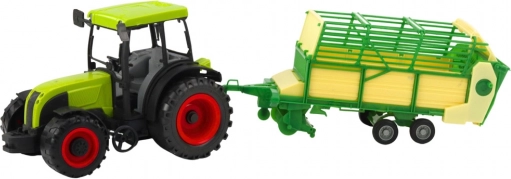 Het eenvoudige mechanisme laat de tractor na een duwtje vlot doorrijden. De aanhanger met realistische details en een groot laadoppervlak is ideaal voor het vervoeren van kleine speeltjes, blokken of “voer”. Het speelplezier stimuleert op natuurlijke wijze de fantasie, rollenspel en fijne motorische vaardigheden.