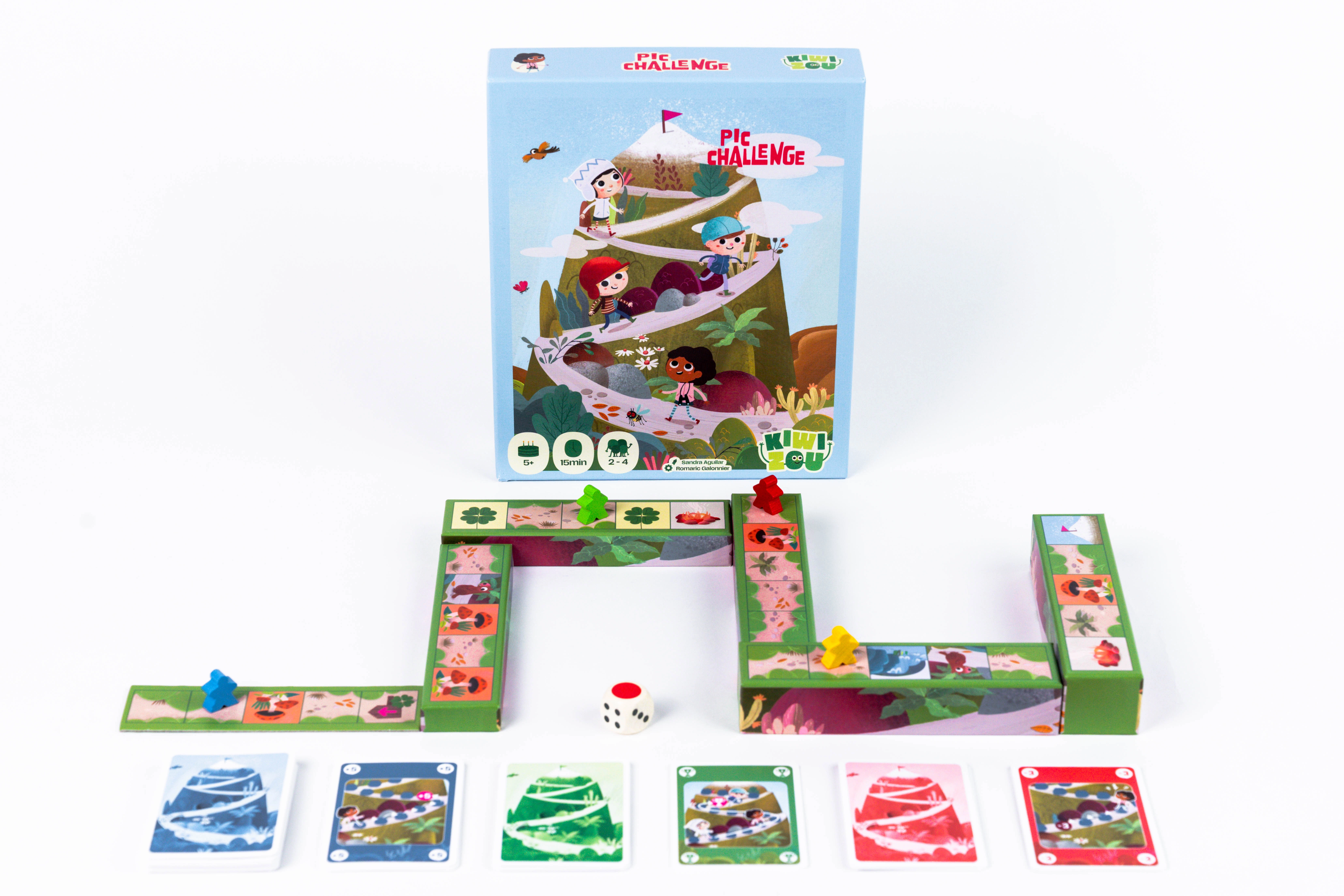 Berguitdaging (PIC CHALLENGE) is een vlot familiespel dat spelers meeneemt op een reis vol avontuur. In plaats van met een dobbelsteen te gooien, verplaatsen spelers hun pionnen met behulp van kaarten die verschillende effecten hebben. Sommige velden stuwen je vooruit, andere testen je geluk en kunnen je zelfs terugzetten – de spanning houdt zo aan tot het einde.