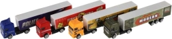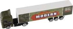 Ontdek een gedetailleerd uitgewerkte vrachtwagen met oplegger die in geen enkele autocollectie mag ontbreken. De metalen cabine geeft het model een realistische look en extra duurzaamheid, terwijl kunststof details het lage gewicht behouden voor eenvoudige hantering. Dankzij de vrijloop is een lichte duw voldoende en rijdt de vrachtwagen soepel weg.
